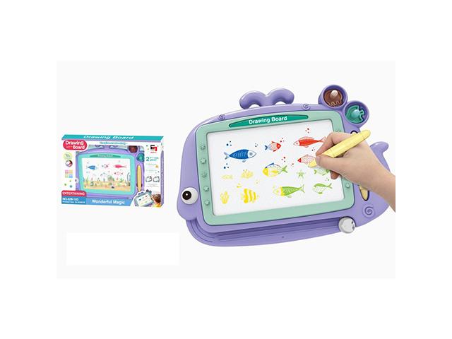 Bálna formájú lila mágneses rajztábla nyomdákkal