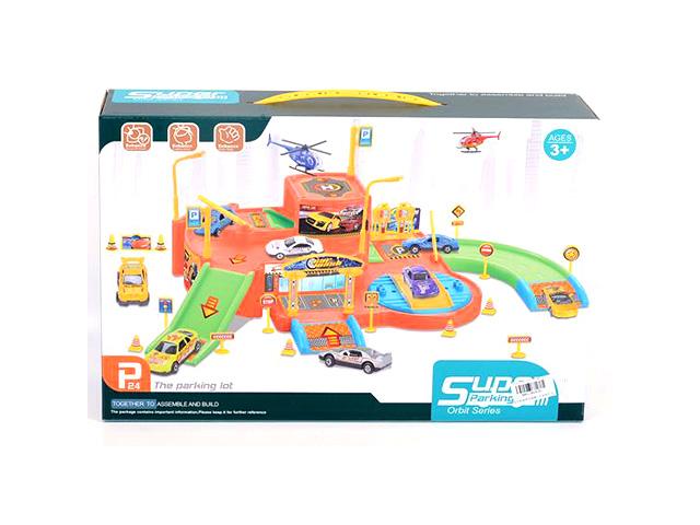 Parkolóház helikopterrel és két kisautóval