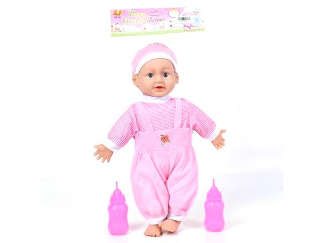 Egy pihe-puha testű babát szerezhetsz be gyermeked számára amely akár egy játék babakocsiba is behelyezhető és gyermeked könnyedén elviheti sétálni a friss levegőre. A szettben 2db cumisüveget is találhatsz amelyek segítségével a baba megetethető. A rongybaba hasát megnyomva hangeffektekkel dogja fel a játékot és sírással, nyöszörgéssel és nevetéssel jelzi, hogy éppen milyen kedve van. A baba 100%-ban káros anyag mentes, pihe-puha szövet anyagból készült amelyet gyermeked akár már 2 éves kortól használatba vehet.