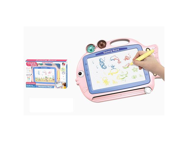 Szerezz be gyermeked számára egy nagyszerű mágneses rajztáblát amely halacska formájú és divatos rózsaszín árnyalatban érkezhet a játékgyűjteményébe. A szett 2db tengeri állat formájú nyomdát is tartalmaz amely szintén mágneses és könnyedén kidekorálhajta velük az elkészült rajzokat. A mágneses rajztábla nagy előnye, hogy semmi másra nincs szükség, csupán a táblához rögzített mágneses tollra és azonnal megkezdheti gyermeked az alkotást. A tábla egyetlen mozdulattal letörölhető az alján található kar elhúzásával.