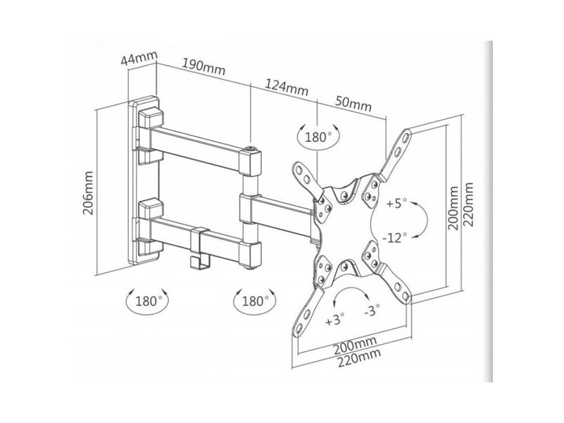 A Sbox LCD-223 13"-42" VESA 200x200 dönthető, forgatható, karos fali konzol leírása: