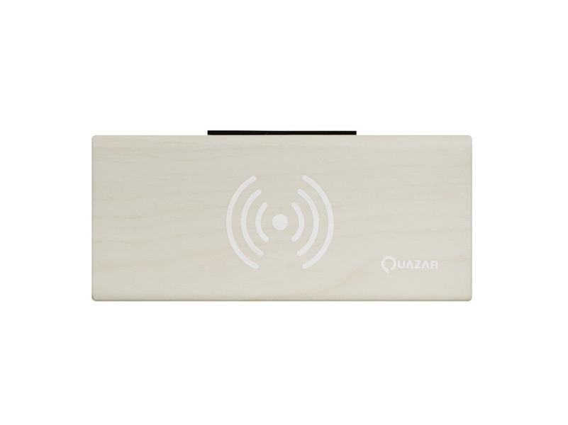 Az asztal alá vagy az ágy mögé dugott töltőkkel, ronda kábelekkel ellentétben a Quazar vezeték nélküli töltője nem csupán praktikus, de szépen kivitelezett formájával stílusos design eleme is minden lakásnak, vagy irodának. A Charger Clock Station szépen erezett pehelykönnyű fából készült, ami nem csak igényes megjelenést biztosít de a teljesen sík, okostelefonra méretezett töltőfelületével, könnyen használható is.