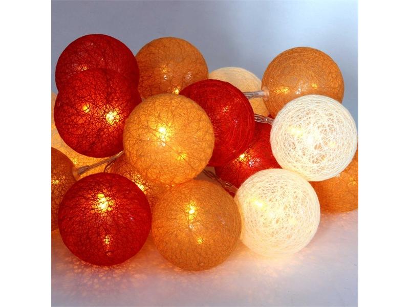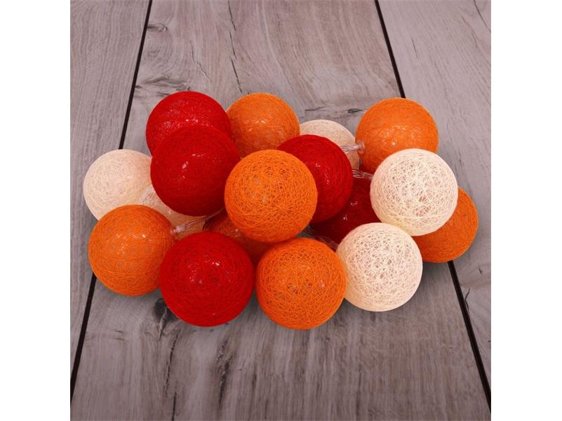 A Gömb alakú 6cm/színes fonott/3m/piros-narancs-meleg fehér/20db LED-es/USB-s fénydekoráció leírása: