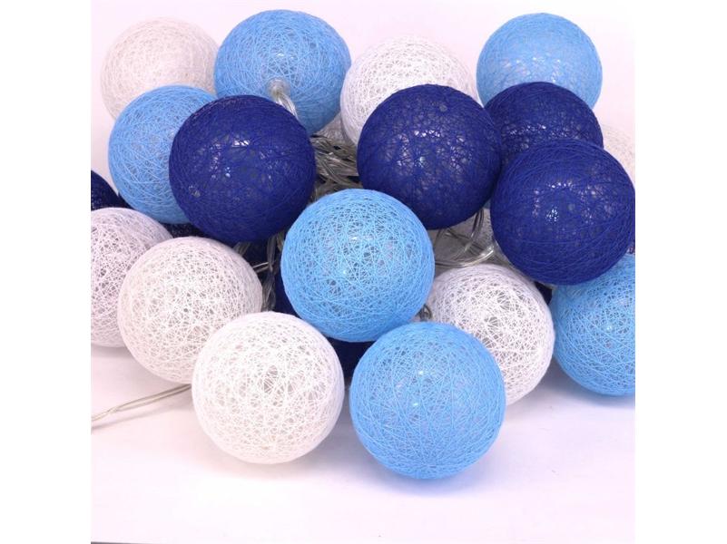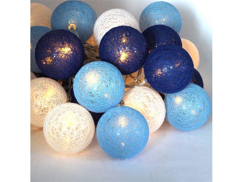 Gömb alakú 6cm/színes fonott/4,5m/kék-v.kék-fehér/30db LED-es/USB-s fénydekoráció