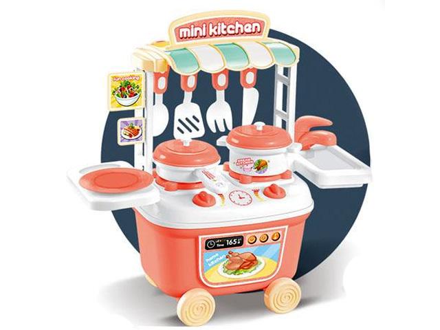 A játék konyhák időről időre hatalmas népszerűségnek örvendenek a gyerekek körében, hiszen minden gyerek szereti leutánozni a felnőtteket, a sütés főzés terén is. Ebben a csomagban egy igazán különleges konyha kapott helyet, hiszen a kerekekre szerelt mini konyhát a gyerekek oda tolhatják, ahová csak akarják. A barack színű kiskocsi első sorban a lányok tetszését fogja elnyerni, különösen, hogy a számtalan kiegészítő segítésével valóban úgy játszhatják el az ételkészítés menetét, mint egy kis konyhában.