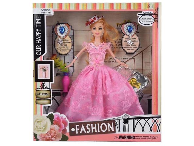 A Fashion divatbaba kalappal, rózsaszín báli ruhában kiegészítőkkel 29cm leírása: