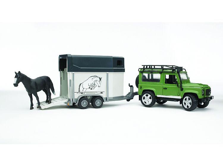A Land Rover Defender dzsip lószállítóval - Bruder leírása: A szett része 1 db Land Rover Defender Station Wagon dzsip, 1 db autóhoz kapcsolható lószállító utánfutó, 1 db ló. Mérete: 62 x 14 x 19 cm. A Land Rover Defender dzsip lószállítóval - Bruder 3 éves kortól ajánlott fiúknak.