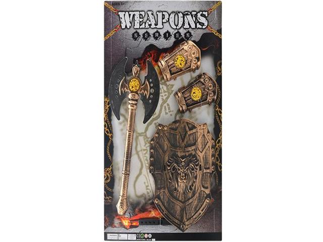 Egy részletgazdag kidolgozottsággal rendelkező középkori bárdot, pajzsot és kézfejvédőt szerezhetsz be gyermeked számára és a készlet segítségével egy szempillantás alatt középkori hős harcossá változat át. A középkor izgalmas történetei megmozgatják a gyermekek fantáziáját amely készségfejlesztő hatással bír és mozgásra ösztönöz. A szettben található kiegészítők strapabíró műanyagból készültek, amely hosszútávú használatot eredményezhet.