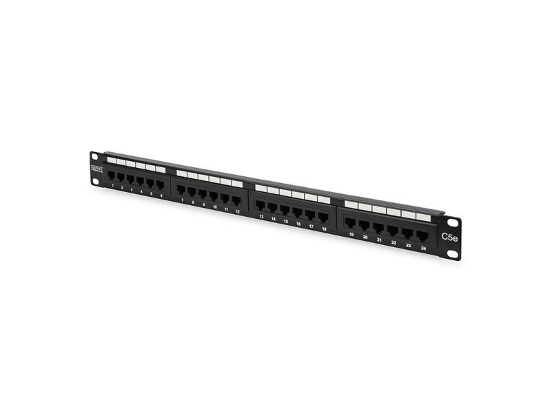 A DIGITUS CAT5e 24port 19" 1U fekete árnyékolatlan Patch Panel leírása: