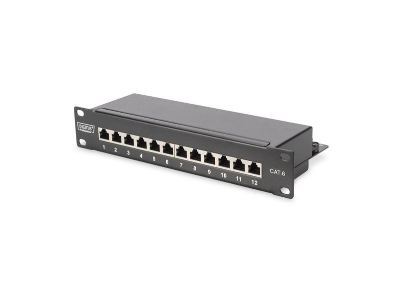 A DIGITUS CAT6 12port asztali fekete árnyékolt patch panel leírása: