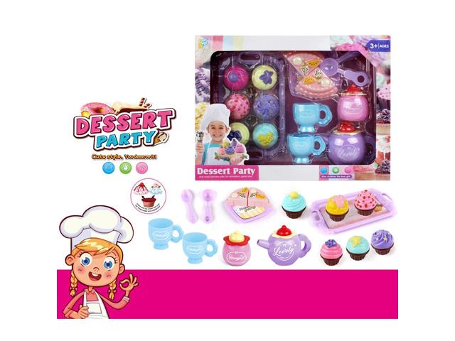 A kislányod imádni fogja ezt a szettet, ugyanis rengeteg tea délutánon lehet majd társa. A szettben találhat majd egy teáskannát, cukortartóval és csészékkel valamint kanalakkal, ami elengedhetetlen része lesz majd a partinak, valamint ezen kívül még egy tálcát és 6 különböző muffint is találhat benne, melyeket felszolgálhat a játék során. Ezeken kívül még egy tányér és két szelet sütemény is van benne, szerezd be és kezdődhet is a teadélután, ahova legjobb barátnőit vagy családját is elhívhatja.