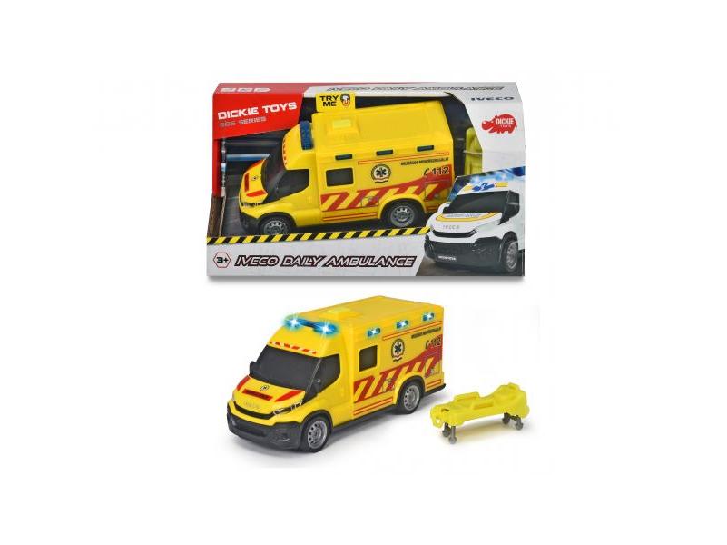 A Dickie Iveco Daily Ambulance, olyan akár csak egy igazi mentőautó. Éljétek át, milyenek lehetnek az életmentők mindennapjai! A játék hang és fényeffektekkel is operál. Hordágy is található a szettben. A játékot 3 éves kortól ajánljuk.