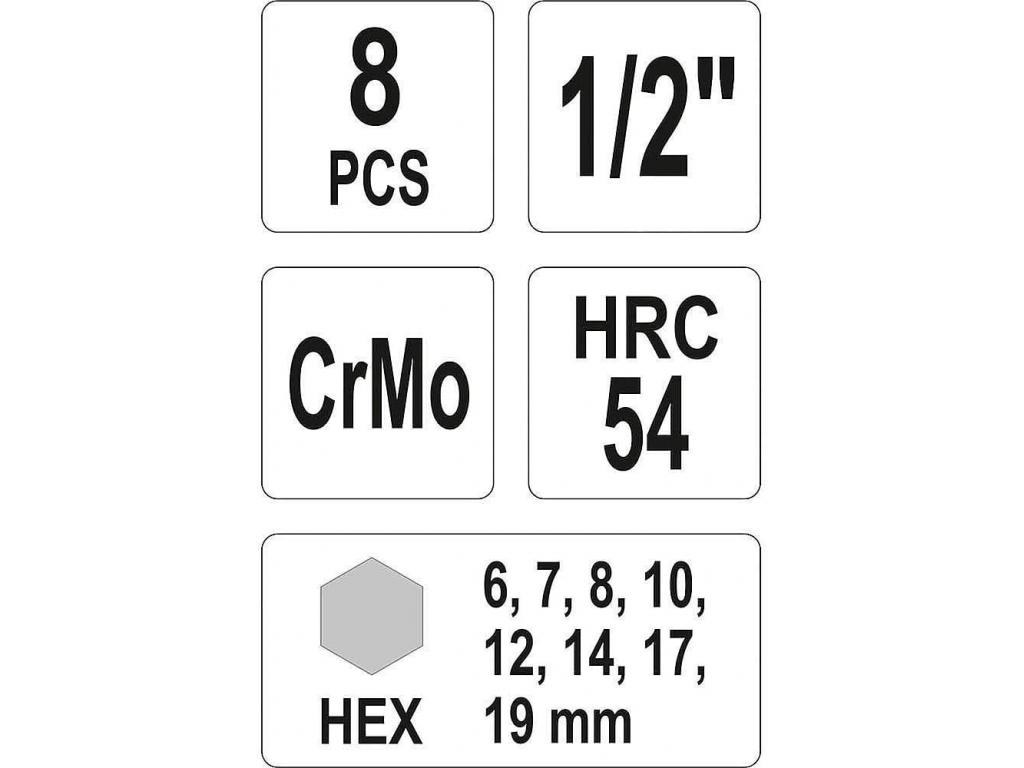 A YATO Bit dugókulcs készlet gépi Imbusz 1/2 col 8 részes 6-19 mm leírása: