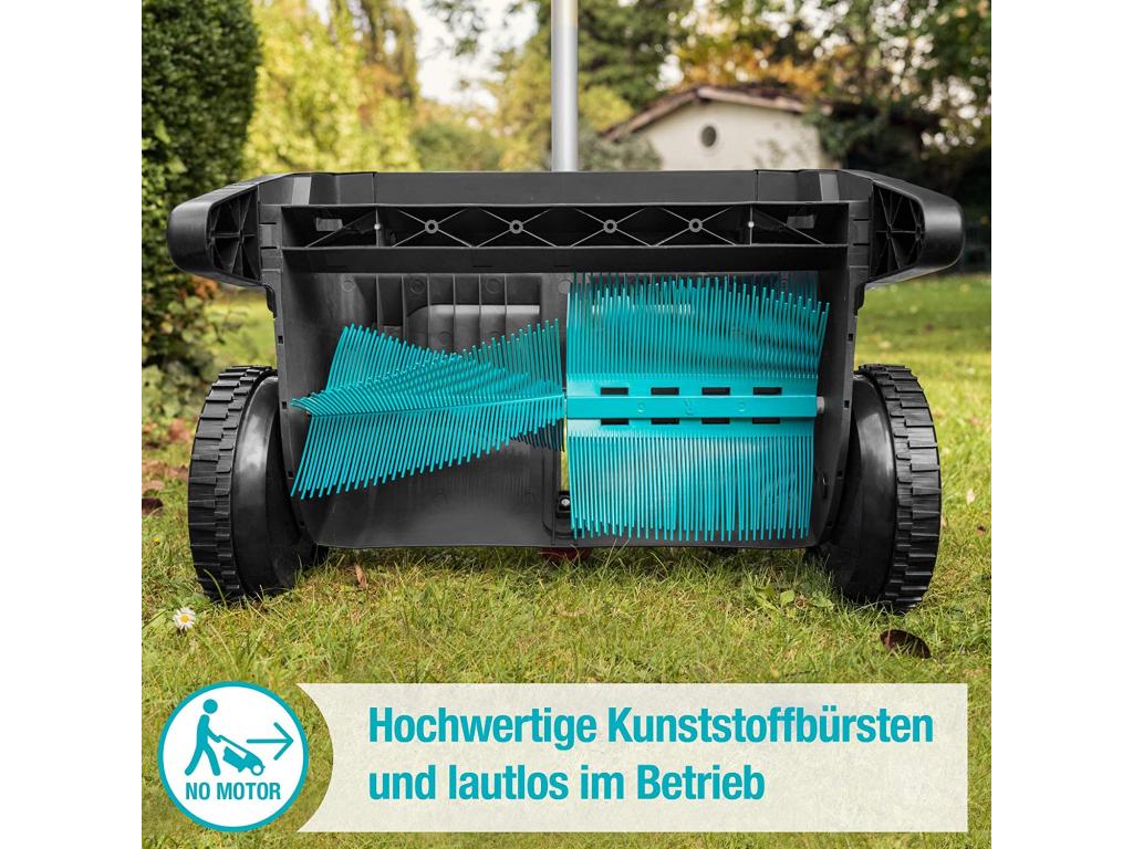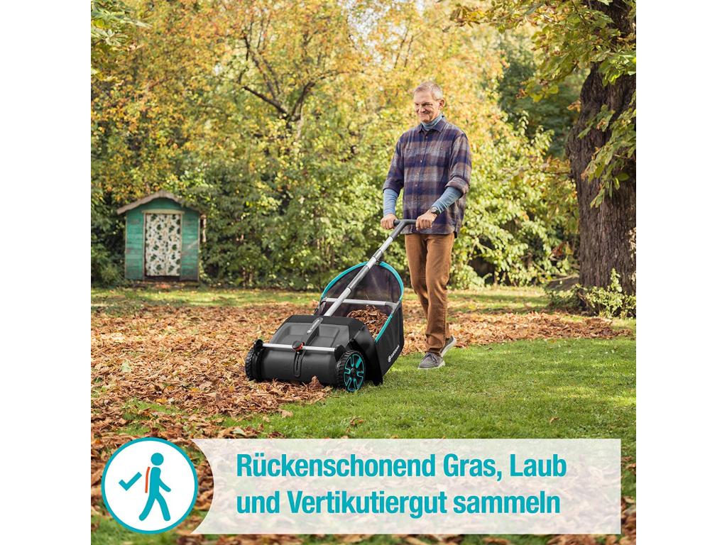 A GARDENA új egyedi megoldása a levelek és a fűnyesedék alapos gereblyézésére és összegyűjtésére.