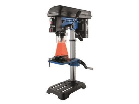 A Scheppach DP 16 SL kiválóan felszerelt, állványos fúrógép az igényes barkácsolók és műhelyek számára. Az alapvető különbség a többi hasonló géphez képest a központosító lézerfény kivetítésének lehetősége, amely előjelöli a fúrás pontos helyét, megkönnyíti azt, így felgyorsítja a nagyobb darabszámú munkadarabok megmunkálási idejét. A gép masszív, öntvényből készült konstrukcióval rendelkezik, standard felszerelései közé tartozik a 16 mm-s fúrótokmány, ötfokozatú sebesség beállításának lehetősége a kemény és puhafa, a fém és a műanyagok megmunkálásához, a leszerelhető satu és az erős 550 W-os motor, amely megbirkózik szinte minden anyaggal. A gép természetesen megfelel az Európai Unió legújabb biztonsági követelményeinek, mint például a gép elején elhelyezett főkapcsoló, az áttetsző tokmányvédő megléte és hasonlók. A gép stabil állványon van elhelyezve, és csavarok segítségével rögzíthető a munkaasztalhoz vagy a padozathoz is.