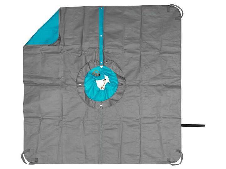 A nyesedékgyűjtő szőnyeg vízlepergető textilszövetből áll, könnyen tisztítható.
