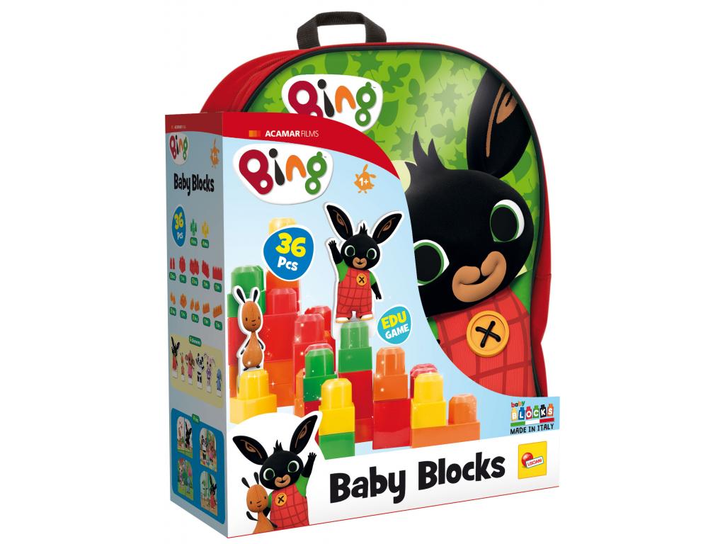 Az építőelemek praktikusan tárolhatók a Bing nyuszis hátitáskában és bárhová magukkal vihetik.