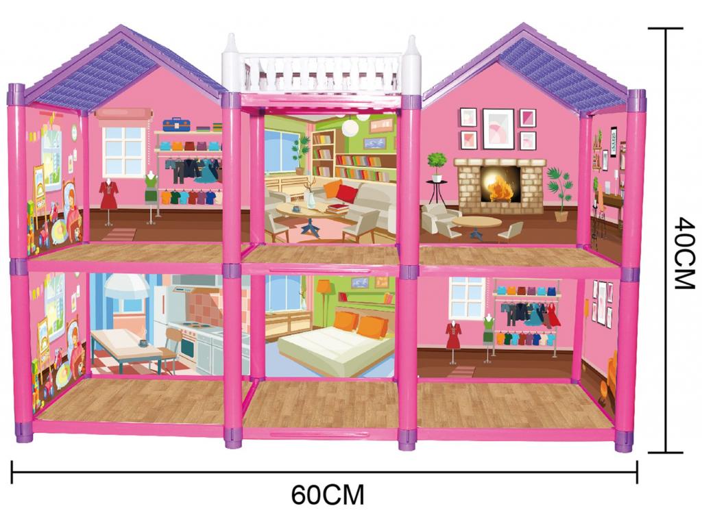Költöztesd be barátaidat új babaházukba! A Babaház kiegészítőkkel készlet segítségével nagyszerű történetekben lehet részed. Az emeletes babaház csupa meglepetést tartogat Számodra. Használd a játékhoz tartozó kiegészítőket és rendezd be a két szépséges barátnő házát. Alakíts ki egy kényelmes nappalit, egy vidám étkezőt, vagy épp egy hangulatos hálószobát! A babaház berendezése után kezdődhet is a végtelen játék! A készlethez jár 2 db szépséges játék baba, akikkel fantasztikus történeteket játszhatsz el. Rendezz teapartit, indulj el barátnőiddel biciklizni vagy rollerezni a friss levegőn. A babaház teraszán pedig megcsodálhatod a házat körülvevő környezetet a magasból. Ez a kellemes és egyben részletgazdag házikó biztosan inspirálni fog téged, nagyszerű kalandok átélésére. A készlet tartalmazza a babaházat 6 különféle szobával és színes kiegészítőkkel, emellett a két játék babát mesés öltözékben. A babaház mérete 60 x 40 cm.