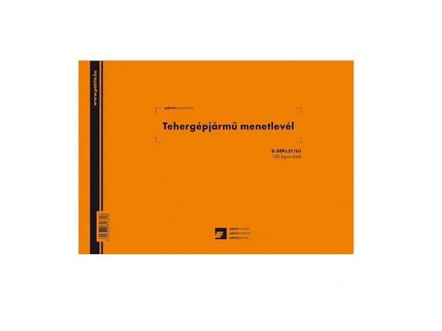 D.GEPJ.21/5 A5 100lapos fekvő tehergépjármű menetlevél