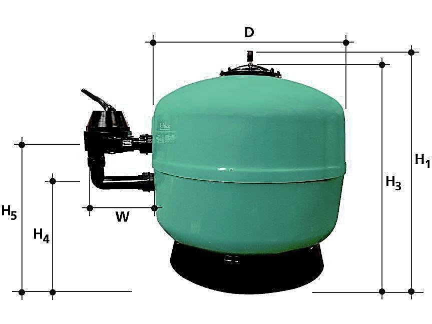 Filtrex Side O450 8m3/h 1 1/2" A szűrő anyaga üvegszál erősítésű laminált poliészter. Tartozéka a hatfunkciós oldalszelep és a nyomásmérő óra. Teszt nyomás 3,5 bar, üzemi nyomás max. 2,0 bar. Szűrési sebesség 50 m/h. Súly: 15,4