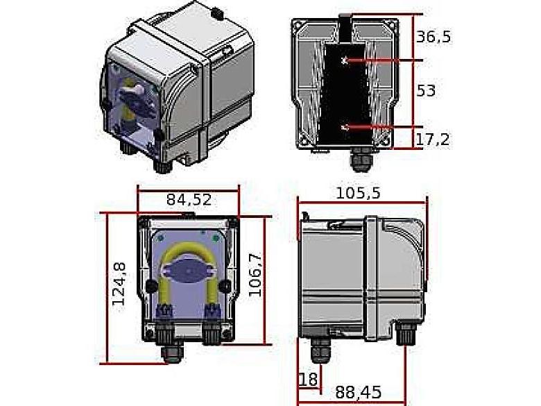 Microdos MP2-B 3l/h - 1bar ˇ Kompakt méretű perisztaltikus adagoló szivattyúˇ Könnyű telepíteni, minimális karbantartásˇ Automatikus légtelenítésˇ Biztonságos és megbízhatóˇ Falra szerelhető konzollalˇ Hengerek önkenőekˇ 2,5 m kábellel szerelve ˇ Tartozékok nélkül szállítva Súly: 0,5 kg