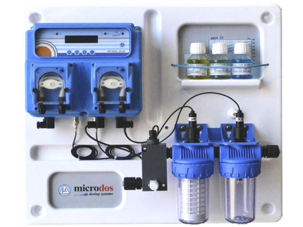 Microdos MP Dual Panel PH - 1,5l/h / RX - 3,0l/h ˇ DUAL adagoló rendszer beépített vezérléssel Jelenidejű vízminőségi adatok kijelzése 2 tizedespontosággal és hőmérsékletértékkel.