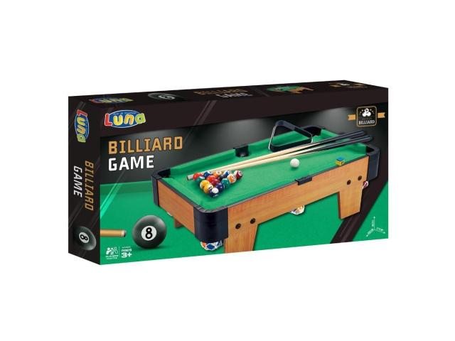 Kicsiknek és nagyoknak egyaránt remek választás ez a mini fa asztali biliárd, mellyel tökéletesen megidézhető a biliárd játékélmény. A szettben egy komplett kis asztal található biliárd dákókkal és golyókkal. Az asztal minőségi fából van, mely nem csak tartós, de szép is. A mérete 58x51cm, ami még a kisebb gyermekek számára is egyszerűen átlátható. A golyók az asztalról a lyukakba gurulva hálókba esnek, így egyszerű őket a játék végén újra összegyűjteni, vagy akár használaton kívül tárolni is. A szett tartalmazza az asztalon kívül a 15 színes golyót, 1 db fehér golyót, 2db biliárd dákót is a háromszöget is.