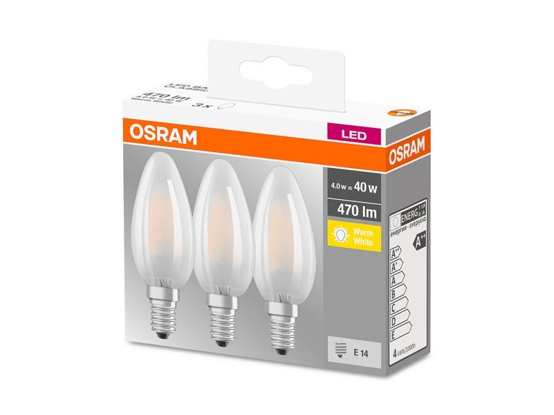 Osram Base matt üveg búra/4W/470lm/2700K/E14 LED gyertya izzó 3 db