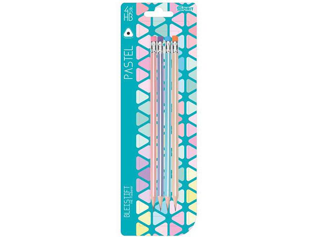 Spirit: Pasztell színű háromszögletű HB grafitceruza radírral 4db-os szett