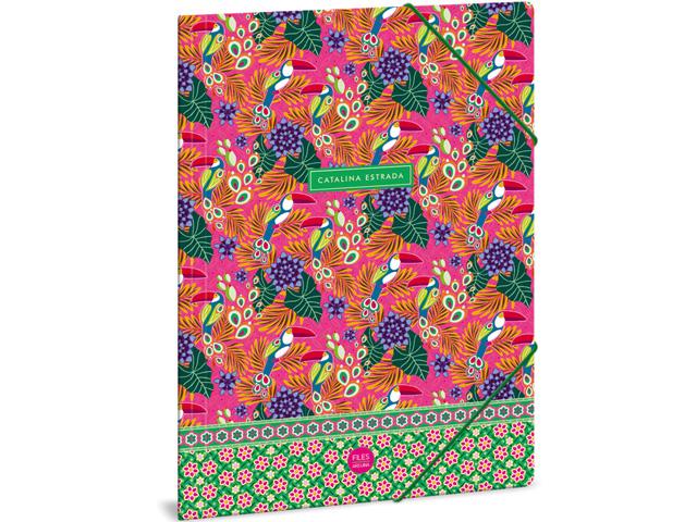 Elegáns minta jelenik meg ezen a praktikus gumis dosszién, mely nem csak mutatós, de egyben igazán hasznos kiegészítője is lesz a gyerekek iskolai felszerelésének. A Catalina Estrada gumis dosszié A/4-es méretű iratok tárolására alkalmas, a legkisebbek pedig kedvenc rajzaikat hordozhatják benne. A mappát iskolatáskában is hordozhatják, felülete lakkozott, így megvédi a tartalmát a külső sérülésektől. Az egzotikus madárral és növényekkel dekorált Catalina Estrada mappa zöld színű gumi pánttal zárható.