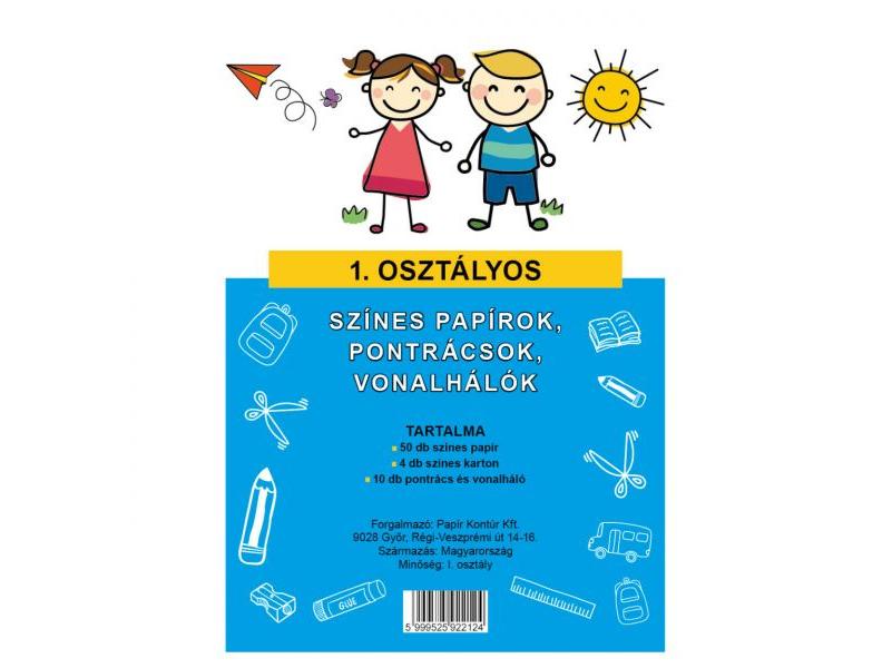 Tartalom: Színes papírkészlet pontrács I. osztályos ( csomagban )