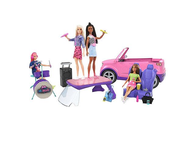 A Barbie babák nem csak a divatos ruhájukkal lopják be magukat a kislányok szívébe, hanem a bulizással és a zenével is. Ebben a csomagban egy vagány guruló színpad található, ami egyrészt jó szolgálatot tesz autóként is, de a levehető megerősített tető szükség esetén színpadként is megállja a helyét. A kocsiban két Barbie babának is van hely, a kiegészítők között pedig megtalálható minden a fergeteges hangulathoz. A Barbie játékszettek mindegyike egy rendkívül divatosan öltözött babát rejt magában, és természetesen semmi akadálya nincs, hogy a babák egymásközt szabadon variálják öltözetüket, így még divatosabb, és egyedibb megjelenést biztosít számukra.
