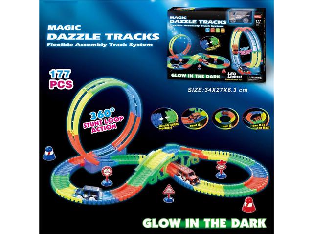 Sötétben világító autópálya szett hurokkal és kisautóval 177 db-os