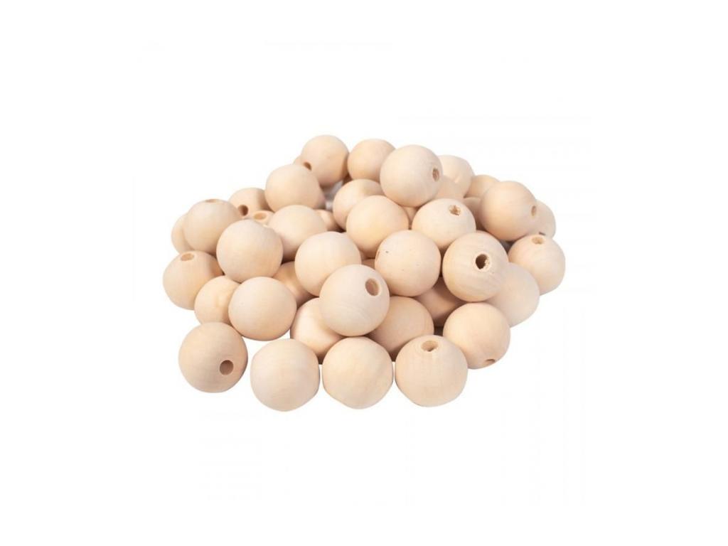 Felfűzhető Playbox golyók fából, 30 mm átmérővel, melxből 50 darabot találsz a csomagban. A lyuk átmérője körülbelül 6 mm.