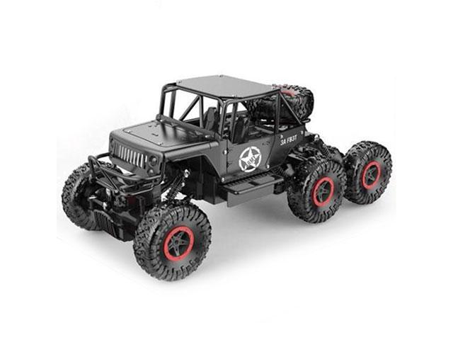 Ez a vagány távirányítós autó egészen biztos, hogy hatalmas sikert arat majd a gyerekek körében, hiszen már a kialakítása is jelentősen eltér a megszokott autóéktól. A klasszikus Jeep alaposan át lett alakítva, hiszen az első kereke jócskán előre lett tolva, míg a hátul dupla tengelyt kapott. Mivel mind a hat kerék meg van hajtva, ezzel ideális hegymászó tulajdonságokkal és terepjáró képességgel büszkélkedhet. A részletgazdagon kidolgozott járgány vezérléséről egy kényelmes kialakítású és könnyen kezelhető távirányító gondoskodik, ami a zavartalan vezetés érdekében 2,4 GHz-en kommunikál a kocsival.