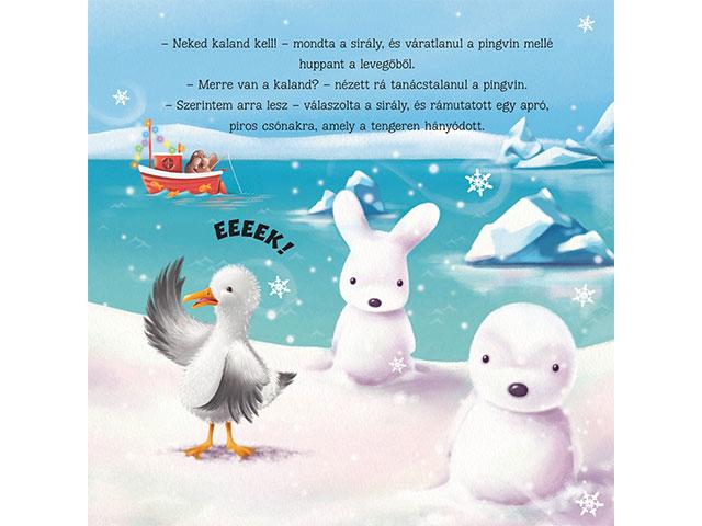 A kicsi pingvin megunta, hogy egész nap csak a lábát lógatja a jeges vízbe. Elindul hát kalandot keresni... Igen ám, de vajon merre van a kaland? És tényleg a kaland az, amire a világon a legjobban vágyik? A gyerekek ennek a kis mesekönyvnek a segítségével a kicsi pingvinnel tarthatnak a kaland keresése közben, és meglátják, hogy mennyi izgalmas élmény vár rá! Az esti mese hallgatása és olvasása nagyszerű hatással van a gyerekek fantáziájára, illetve nagyon sokat segít nekik az olvasott szöveg megértésében, ami a tanulás és a munka során is jelentős segítség lesz számukra.