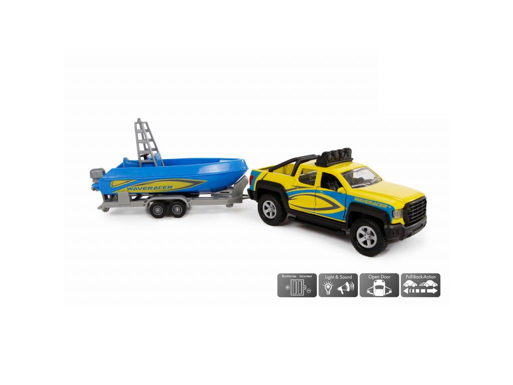 Kids Globe terepjáró utánfutóval és csónakkal - 29 cm