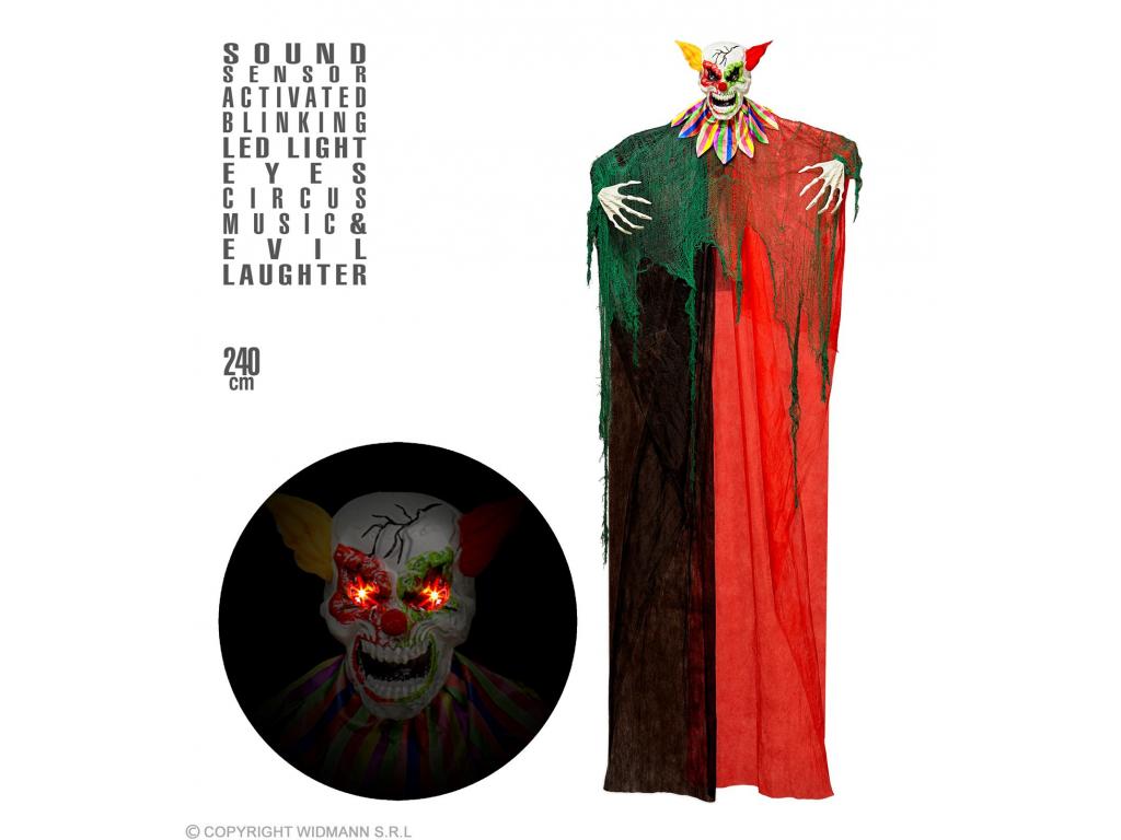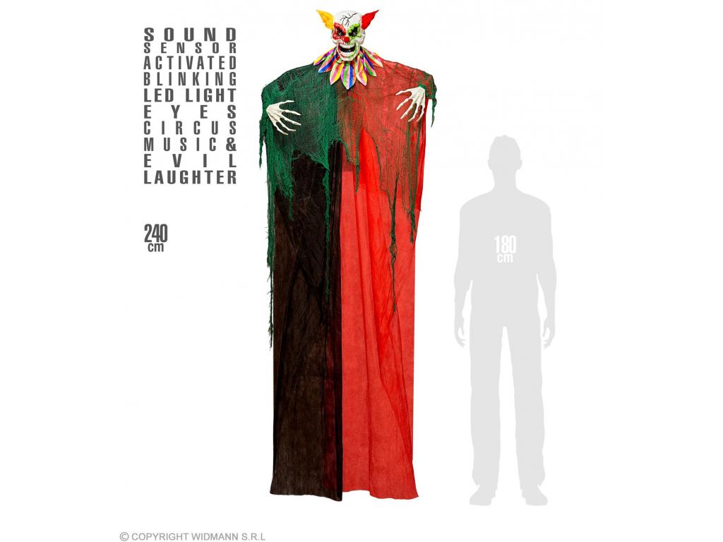 Ijesztő halloweeni dekoráció fénnyel, amitől mindenki frászt kap! Méret: 240 cm A termékhez szükséges 3 db LR44 elem. bohóc dekoráció