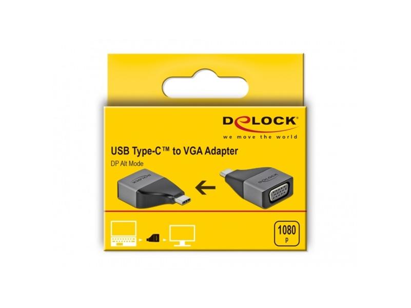 Delock USB Type-C adapter VGA (DP Alt Mode) 1080p kompakt kialakítású