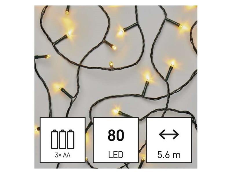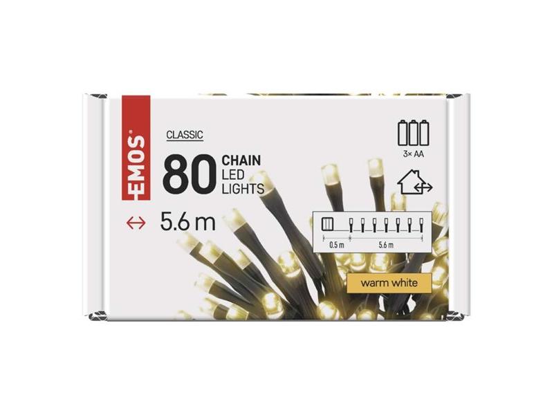 Emos D4FW02 5,6m/80LED/3xAA/kül-beltéri/időzítős/meleg fehér karácsonyi LED fényfüzér