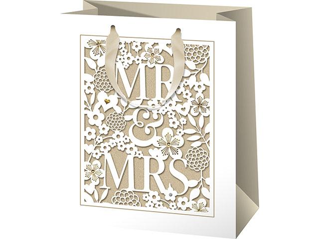Mr. és Mrs. esküvői közepes méretű ajándéktáska 18x10x23cm