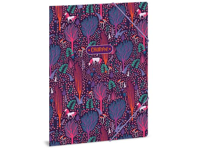 A Charme dosszié első sorban a lányoknak fogja elnyerni a tetszését, hiszen a külső mintát egy varázslatos erdő adja, benne hófehér unikornisokkal. Ezek a mesebeli lények, és a mappa vidám színei még a legunalmasabb iskolai napot is képesek egy kicsit vidámabbá varázsolni. A dosszié az A/4-es méretének köszönhetően minden elterjedt lapmérethez kiválóan használható, a fedlapja egy gumis madzaggal könnyedén fixálható, így biztosak lehetünk abban, hogy a benne elhelyezett lapok és dokumentumok nem fognak összegyűrődni illetve elkallódni.
