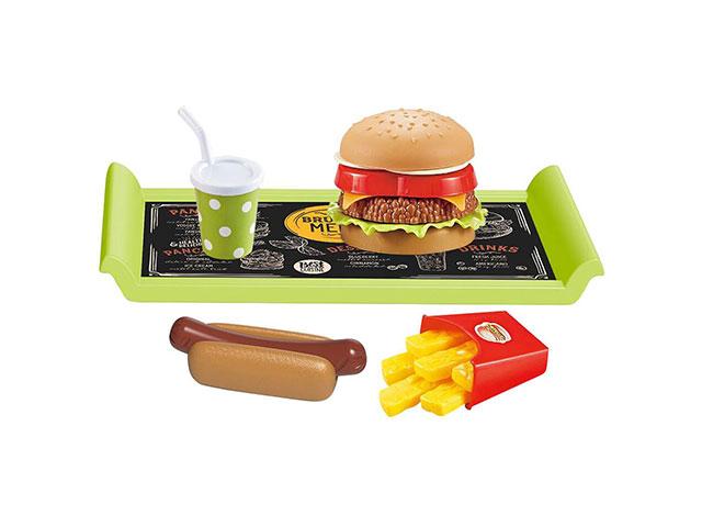 Szinte minden gyerek imádja a gyorséttermi hamburgereket, sült krumplit és üdítőket, így ennek a készletnek biztos, hogy nagy sikere lesz. A csomag tartalmaz egy hamburgert, egy hotdogot, egy adag sült krumplit, valamint egy pohár üdítőt, sőt egy tálcát is, amivel a gyerekek pillanatok alatt egy szuper gyorséttermet varázsolhatnak a gyerekszobából. A készlet segítségével a gyerekek remekül gyakorolhatják a gyorséttermekre jellemző ételrendelést, annak a kiadását, illetve a fizetés menetét, ezzel is fejlesztve a gyerekek szociális készségeit.