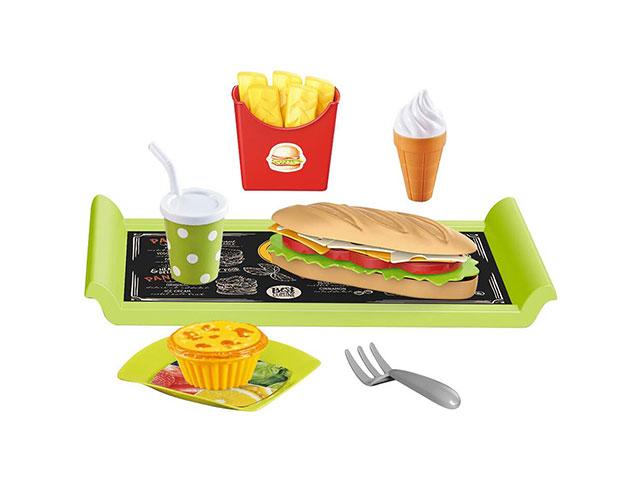 A gyerekek egy pillanat alatt hangulatos reggelizőt vagy szendvicsbárt varázsolhatnak a gyerekszobából, ennek a játékszettnek a segítségével. A készletben minden megtalálható, amire csak szükség van a gusztusos szendvicstől, az ínycsiklandó süteményig, de akár egy finom fagyi vagy egy forró sült krupli is beleférhet a rendelésbe. A készlet segítségével a gyerekek remekül gyakorolhatják a gyorséttermekre jellemző ételrendelést, annak a kiadását, illetve a fizetés menetét, ezzel is fejlesztve a gyerekek szociális készségeit.