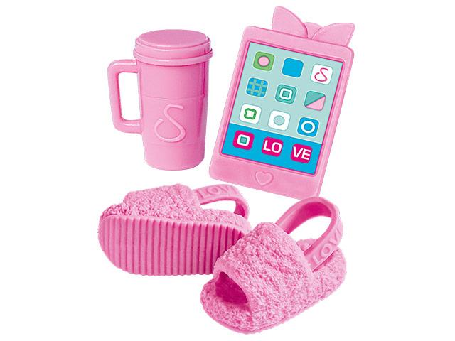 Steffi babának, mint akármilyen más embernek néha lazulásra van szüksége, ezért a Steffi Love sorozat ezt a játékcsomagot kínálja ennek alkalmából. Steffi baba megjelenése elvarázsolja a kislányokat hiszen a rózsaszín a legtöbbjük kedvenc színe és a baba tetőtől talpig ilyen színbe van öltöztetve. Ehhez még hozzájárul a többi kiegészítő is, ami a lazuláshoz alkalmas: egy pár papucs, egy tablet és egy pohár amelyek mind rózsaszín színűek. Ezeken a kiegészítőkön a Love feliratot láthatjuk.