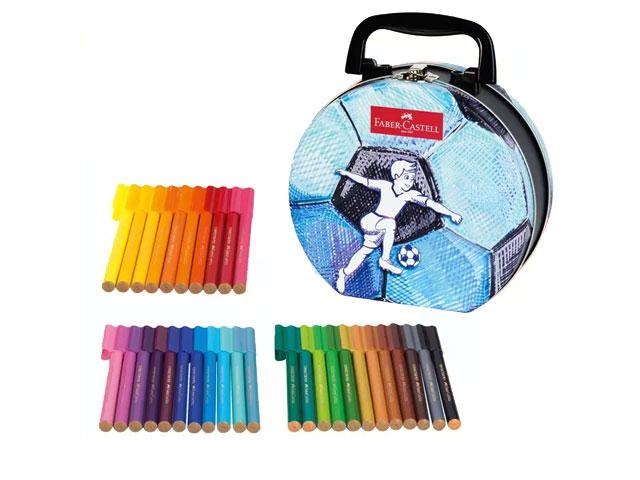 Ez a filctoll készlet garantáltan megindítja a gyerekek kreativitását, ami nem csak a több mint harminc különféle színnek köszönhető, hanem a különleges kialakításnak is, ami lehetővé teszi, hogy a filctollakat egymáshoz lehessen csatolni, így akár két három vagy több filccel egyszerre lehet dolgozni. Az élénk színeket felvonultató készlet ideális választás a színezőkhöz épp úgy, mint a kötetlen alkotáshoz, ugyanakkor a vízbázisú festékanyagnak köszönhetően a filc nyoma a legtöbb textilből kimosható. A készlet egy focilabda mintájú fém tárolóban érkezik, ami rendkívül praktikus tároláshoz és utazáshoz egyaránt.