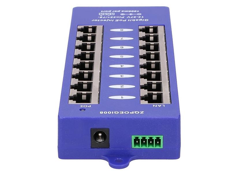 MaxLink 8 Port Gigabit 12V~57V DC PoE Injector