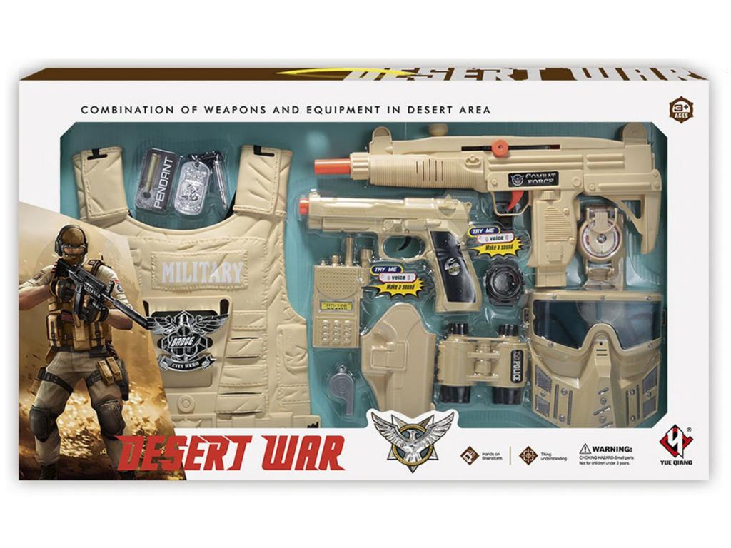 A sivatagi fegyver és kiegészítő készlet katonai jelmez kiegészítőként is használható.