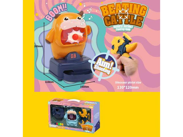 Ez a célba lövő játék garantáltan hatalmas sikert arat majd a kis srácok körében, hiszen semelyik eleme nem éppen szokványos. A fegyvert egy dinoszaurusz formájú pisztoly adja, míg a céltáblaként egy hatalmas tehén nyitott szája szolgál. A feladat egyszerű! Tedd a lövedéket a dinoszauruszos pisztolyba, kapcsold be a céltáblát, hogy a digitális kijelző helyetted számolja a találatokat, és a lehető legtöbbször találd el a célt. Mint minden célba lövő játék, úgy ez is remekül fejleszti a gyerekek szem-kéz koordinációját, ráadásul nagyszerű szórakozás is.