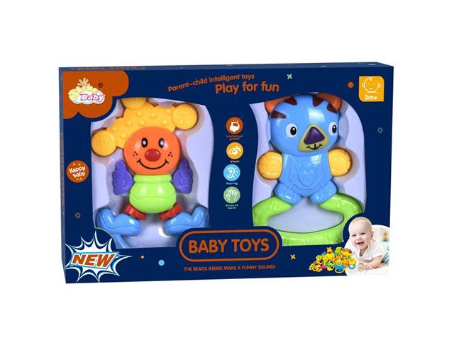 A csörgők és rágókák egyetlen baba játékai közül sem hiányozhatnak,így ez a szett remek választás a három hónapos apróságok számára. A készletben két játék is található, de a bohóc és a mackó is egyaránt olyan élénk színekkel rendelkezik, amelyek könnyedén felkeltik a picik érdeklődését, és a számos izgalmas funkció pedig hosszabb távon le is köti azt. A csörgő funkció mellett mindkét játék úgy lett kialakítva, hogy egyes részeit a babák meg tudják rágcsálni, amivel az ínyüket erősíthetik és elősegíthetik a fogak kibújását.